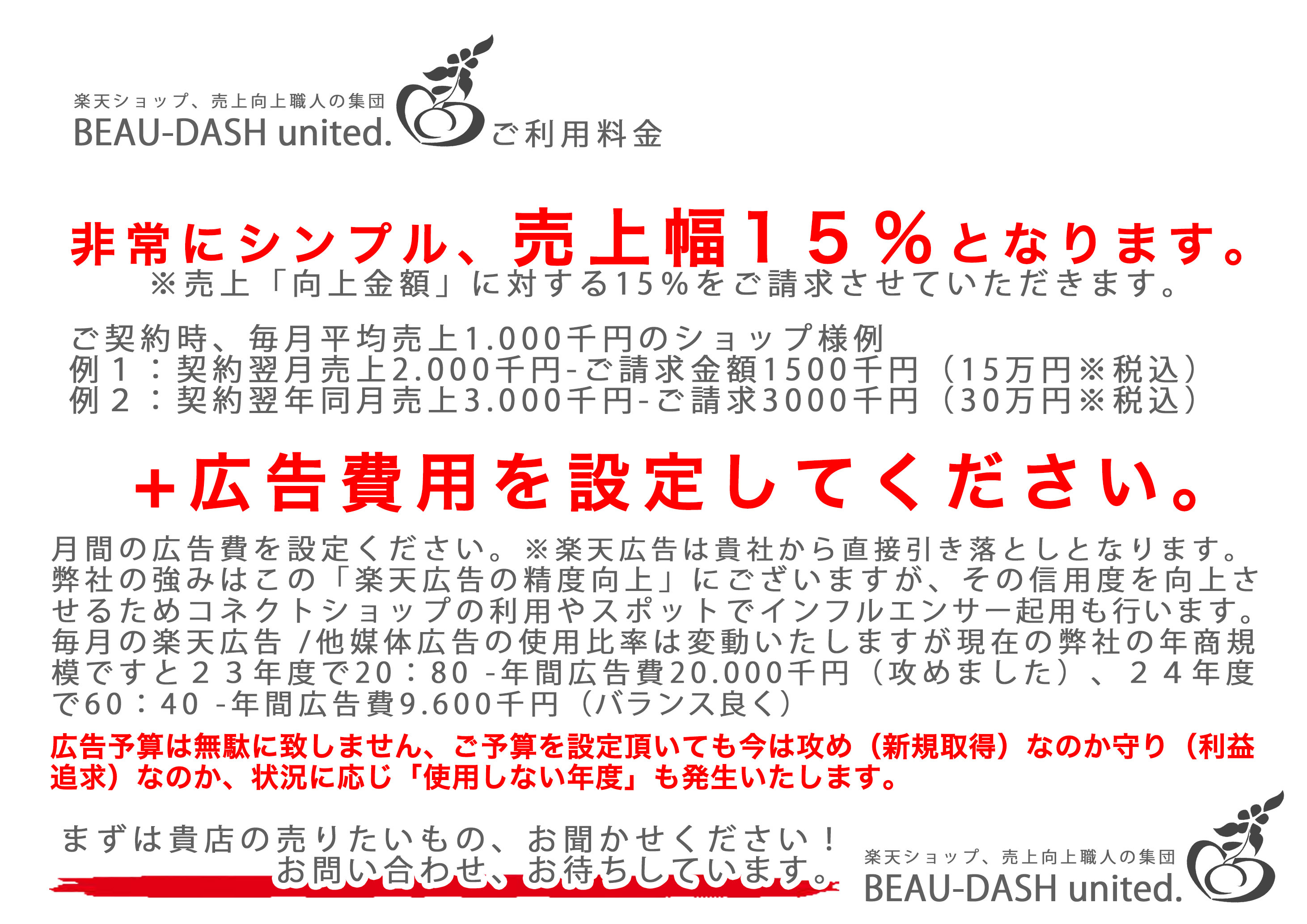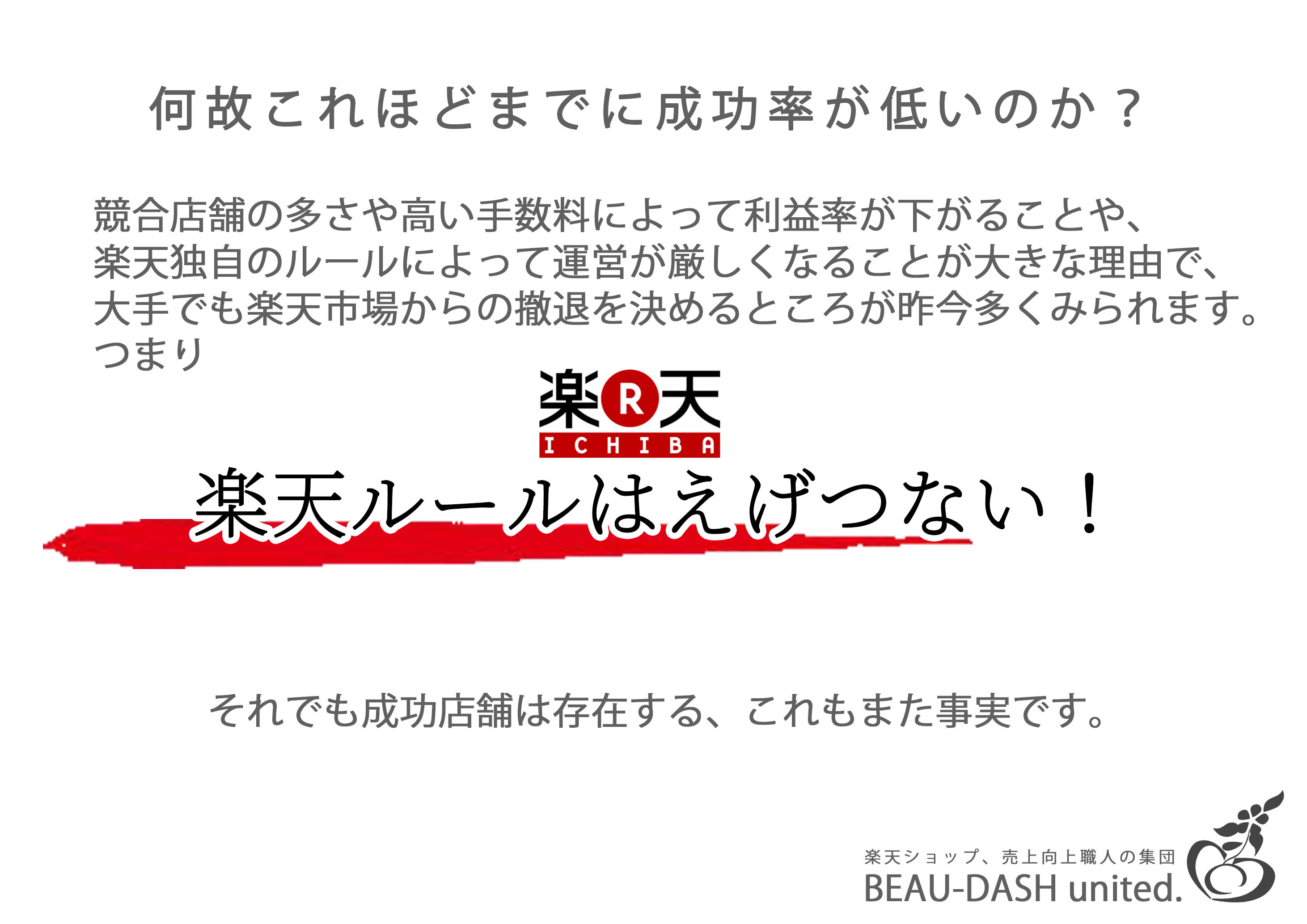 要はこういう事業、そして弊社の強みはココです! 後発にもかかわらず、自社楽天ショップの年商は成長中。豊富な楽天広告の使用方法を熟知。楽天広告以外の集客手法が豊富でタイムリー。 遠藤康平の「いまこれ開発中」 化粧品製造業 食品、サプリ開発製造業 飲料開発製造業 楽天ショップ運営コンサル業 農業 農業ハウス開発設営業 清掃、巡回、補修事業 リノベーション業務 AIデータ修正業
